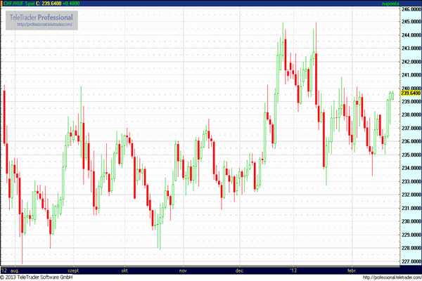 EUR/USD (1,3100 – 1,3300): Az 1,3220-as szint környékén kezd az árfolyam, de mindenki a délután három órát várja, akkor zárnak az olasz szavazókörök, és nem sokkal ezután már érkeznek is az első eredmények. A választás kimenetele nagyban befolyásolhatja a kockázatvállalási hajlandóságot, és így az árfolyamok alakulását. Több szcenárió is valószínű, de a piacoknak egy esetleges Berlusconi győzelem lenne a legrosszabb. A populista, költekezést, adócsökkentést jelentő ígéretek sok olasznak tetszhettek, de megtörnék az amúgy is lassan haladó konszolidáció menetét, újra napirendre véve az eurózóna problémáit, ami a ciprusi bankrendszer problémái miatt egyébként újra erősödni látszik. Ennek egyik jele lehet a vártnál kisebb mértékű LTRO visszafizetés is, a várt 137 milliárdos összeg helyett, csak 61,1 milliárd eurót fizettek vissza a bankok. Emiatt hiába lett jó a pénteki német IFO adat, a dollár péntek délutánra 1,3145-ig erősödött a hangulat romlása miatt.