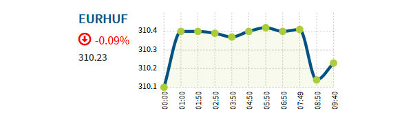 Az euró a hétfő esti 309,75 forintról 310,38 forintra erősödött, a frank árfolyama 266,45 forintról 269,29 forintra ugrott, a dolláré pedig 249,51 forintról 250,89 forintra emelkedett.