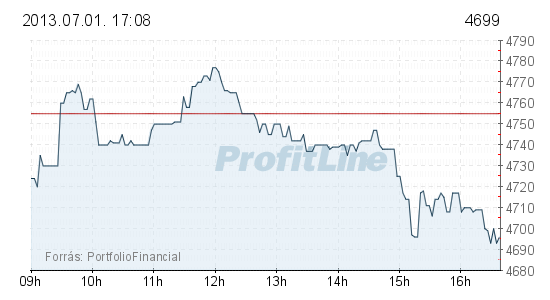 A Mol ára 150 forinttal, 0,88 százalékkal 16 800 forintra csökkent, 1,1 milliárd forintos forgalomban. Az OTP-részvények ára 56 forinttal, 1,18 százalékkal 4699 forintra esett, forgalmuk 5,3 milliárd forintot tett ki.
