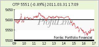 A Mol 120 forinttal, 0,50 százalékkal 23.980 forintra csökkent, 1,5 milliárd forintos forgalomban. Az OTP részvények ára 50 forinttal, 0,89 százalékkal 5.551 forintra esett, forgalmuk 6,3 milliárd forintot tett ki.
