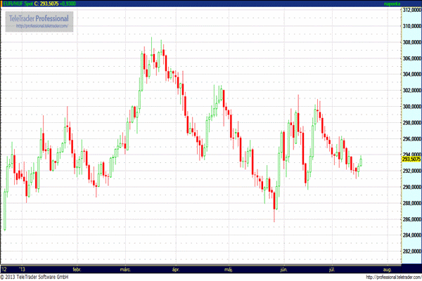 Ezek hatására a már tegnap este is a 293-as szintet közelítő árfolyam ma reggel hirtelen 294-ig gyengült. Innen indult a mai, mindenki által várt nap, a hazai hírek után, ismét a piaci hangulat, és a külpiaci eseményeké lesz a főszerep. A 291-296-os sávban tarjuk valószínűnek a mozgást a mai napon.