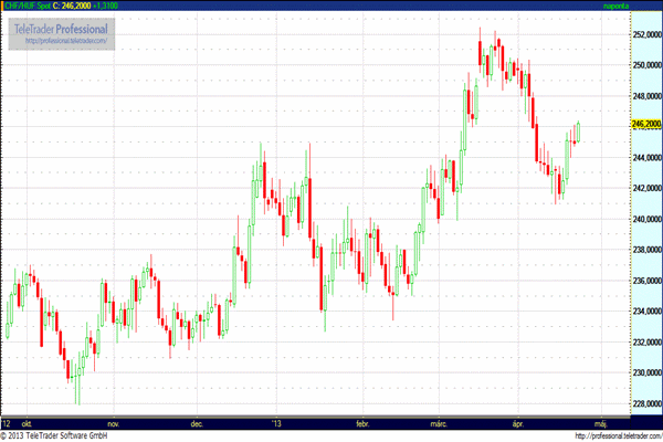 CHF/HUF (243,40 – 247,50): A forint gyengülése megtett a hatását, a 246-os szint fölött is járt a devizapár. Este viszont a hangulat javulásával párhuzamosan némileg gyengült a frank és erősödött a forint, így a 244,50-es szintig korrigált az árfolyam. Továbbra is 240 fölötti szintekre számíthatunk.