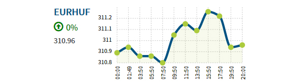 Az euró 311,23 forintra erősödött este fél hétre a kora reggeli 310,81 forintról. Jegyzése napközben 310,55 és 311,49 forint között mozgott.
