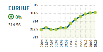 Az euró 314,58 forintra erősödött a reggeli 313,65 forintról. Napközben 313,38 és 314,82 forint között mozgott az árfolyama.