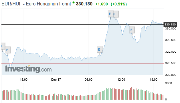 Az előző napi záráshoz képest az euró 0,54 százalékkal, a dollár 0,44 százalékkal, a frank 0,69 százalékkal, a jen pedig 0,45 százalékkal erősödött.