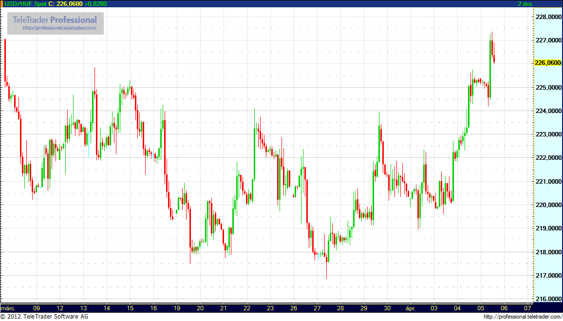 A forint már szerdán gyengült az általánosan romló nemzetközi befektetői hangulatban. A befektetői kockázatvállalási hajlandóság szintjét viszonylag nagy pontossággal tükröző euróárfolyam szerdán 1,33 feletti dollár jegyzésekről 1,31 közelébe gyengült, és ezt a szintet tartotta csütörtökre virradóra is. Csütörtökön az euró tovább gyengült és 1,3035 dolláron három hetes mélypontot érintett. Délután fél négykor az eurót 1,3044 dolláron jegyezték a bankközi devizakereskedelemben. Csütörtökön nem érte pozitív impulzus a devizapiacokat, a kereskedés így a szerdán kialakult borús hangulatban folytatódott.