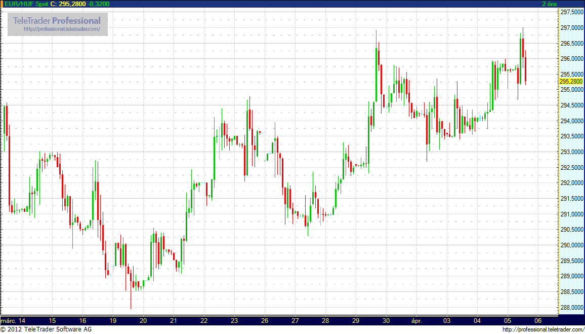 Az eurót csütörtök délután háromnegyed négykor 295,26 forinton jegyezték a bankközi deviza kereskedelemben a szerda délutáni 295,24 forint után. Csütörtökön az euró jegyzése 294,83 és 296,96 forint között mozgott. A svájci frankot 245,66 forinton jegyzik 245,10 forint után, a dollár csütörtök délután 226,36 forinton áll a szerda délutáni 224,50 forinttal szemben, a japán jent pedig 2,7525 forinton jegyzik 2,7270 forint után.