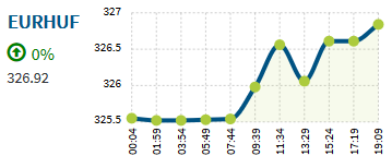 Este hét órakor az eurót 327,00 forinton, a dollárt 280,60 forinton, a svájci frankot 289,00 forinton, a japán jent pedig 2,5227 forinton jegyezték.