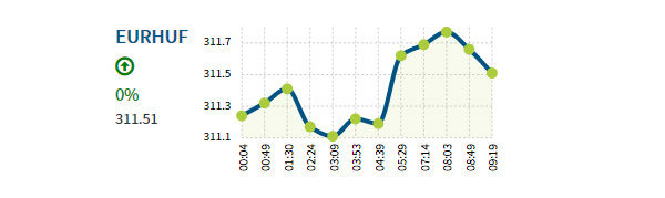 Az eurót a péntek esti 311,60 forint után hétfő reggel nyolc órakor 311,82 forinton jegyezték. A dollár jegyzése 265,06 forintra emelkedett a péntek esti 263,93 forintról a svájci franké pedig 273,11 forintra 272,38 forintról.