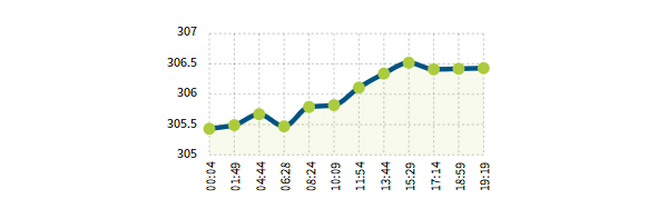 Az euró jegyzése 306,48 forintra erősödött este fél hétre a reggeli 305,65 forintról. Az euró napközben 305,35 és 306,83 forint között mozgott.