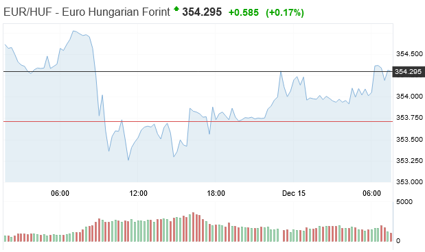Az euró 354,60 forinton forgott hét órakor a hétfő esti 353,76 forinthoz képest.