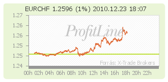 Röviddel 17.30 óra után 1,2608 svájci frank ért egy eurót, ez 1,1 százalékos frankgyengülés a szerda késő estihez képest.