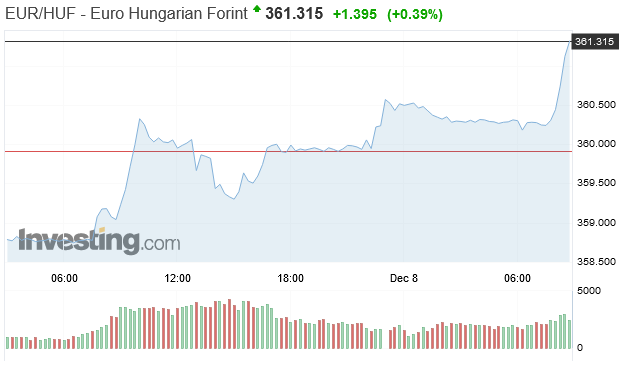 Az euró jegyzése kedd reggel nyolc órakor 360,33 forinton, a dolláré 297,40 forinton, a svájci franké pedig 333,79 forinton állt, magasabban a hétfő este hét órai sorrendben 359,93, 296,75 és 333,65 forintos jegyzésnél.