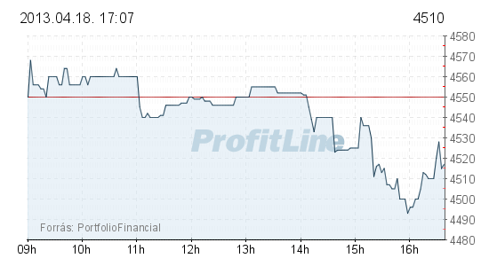 A Mol 200 forinttal, 1,25 százalékkal 16 240 forintra erősödött, 739,3 millió forintos forgalomban. Az OTP-részvények ára 40 forinttal, 0,88 százalékkal 4510 forintra csökkent, forgalmuk 2,3 milliárd forintot tett ki.