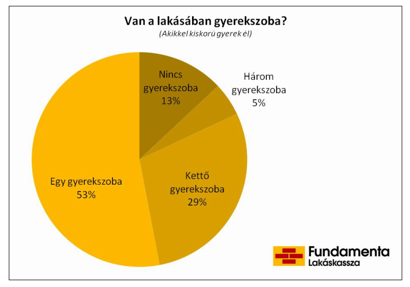 Az országos reprezentatív kutatás eredményeiből kiderül, hogy a kiskorú gyermekkel rendelkezők 87 százalékának lakásában van külön gyerekszoba. 53 százalékuk egy ilyen helyiséget említett, 29 százalékuk kettőt, és mindössze 5 százalékuk jelezte, hogy 3 vagy több gyerekszobával rendelkezik. Az eredmények alapján amíg a kétgyermekes családoknál javul a helyzet (89%), addig a 3 vagy több gyermekkel rendelkezőknél valamelyest romlik: közülük kevesebben említették, hogy külön helyiségben nevelkednének a gyerekek (83%).