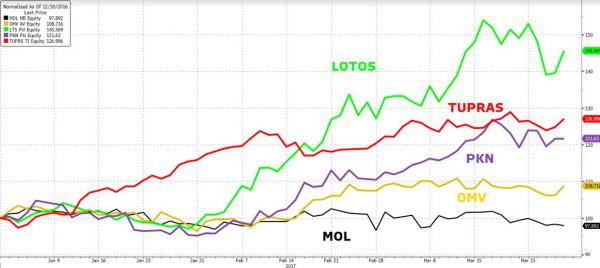 Január óta a meghatározó régiós olajcégek jelentős emelkedést tudtak felmutatni, miközben a MOL még enyhén veszített is értékéből az átváltható CEZ kötvények nyomása miatt.