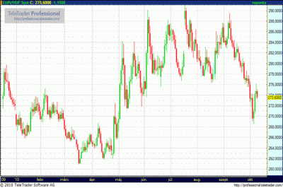 A hét végén és hétfőn délelőtt az euró árfolyama 274,50 közvetlen közelében ingadozott. A nemzetközi devizapiacokon az IMF tanácskozás hétvégi, az "árfolyamháború" megoldása szempontjából eredménytelen lezárása miatt tartózkodóbbá váltak a befektetők, a devizapiacokon az árfolyamok viszonylag szűk sávba szorultak.