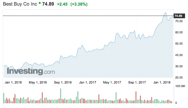 Az eredmények arról tanúskodnak, hogy az elektronikai cikkek esetében a vásárlók továbbra is díjazzák a személyes kapcsolatot a bolti személyzettel, aminek a Best Buy igyekszik maradéktalanul megfelelni. 2018-as első negyedévi árbevétel-várakozását a 8,65-8,75 milliárd dolláros sávban határozta meg a cég, ami egybeesik az elemzői konszenzussal. Ez kicsit beárnyékolta a nagyon erős negyedévet, így csupán 1%-kal emelkednek a részvények piacnyitás előtt.