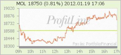 A Mol 150 forinttal, 0,81 százalékkal 18.750 forintra erősödött, 4,3 milliárd forintos forgalomban. Az OTP részvények ára 239 forinttal, 6,81 százalékkal 3.749 forintra nőtt, forgalmuk 21,7 milliárd forintot tett ki. A Magyar Telekom árfolyama 1 forinttal, 0,18 százalékkal 546 forintra emelkedett, forgalma 1,7 milliárd forint volt. A Richter papírok árfolyama 545 forinttal, 1,47 százalékkal 36.550 forintra csökkent, a részvények forgalma 1,1 milliárd forintot ért el. A másik gyógyszeripari részvény, az Egis 225,3 millió forintos forgalom mellett 35 forinttal, 0,21 százalékkal 16.790 forintra erősödött. A BUMIX 1.275,92 ponton zárt csütörtökön, ez 20,31 pontos, 1,62 százalékos emelkedés a szerdai záráshoz viszonyítva.