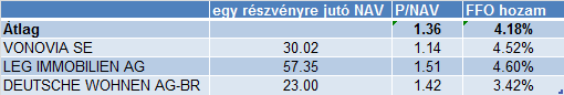 A következő táblázatba a Vonovia és néhány szektortársának a legfontosabb mutatóit hasonlítottuk össze. A táblázatból is látható, hogy a Vonovia kedvező értékeltséggel rendelkezik.