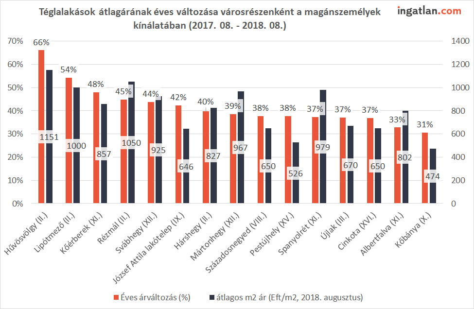 Az egyik legnagyobb kínálattal rendelkező XI. kerületen belül Őrmezőn például 30 százalékkal, a kelenföldi lakótelepen 80 százalékkal, Gazdagréten pedig több mint 100 százalékkal nagyobb volt a klímás panellakások iránti érdeklődés. A téglalakások esetében is jelentősek a különbségek: a lágymányosi városrészben szintén 100 százalékos fölényben voltak a légkondicionálóval ellátott lakások, a XIII. kerületben Angyalföldön vagy éppen azújlipótvárosi téglalakások esetében is 60-100 százalékkal nagyobb az egy hirdetésre jutó érdeklődések száma a klímás lakások esetében.