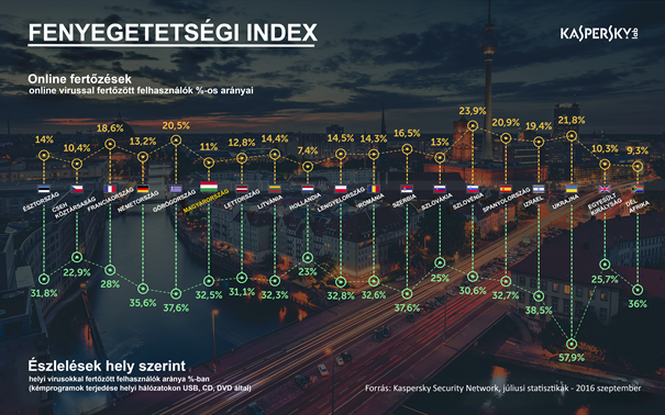 A Kaspersky szakértői ezen kívül tartottak egy áttekintést a jelenlegi globális helyzetről, regionális támadási veszélyekről, biztonsági trendekről, valamint a támadások fő irányvonaláról, ami érintheti a szektort. A cég 2016-os 3. negyedévi jelentése szerint Európában a felhasználók 33%-a találkozott belső hálózatról vagy külső adathordozóról származó fenyegetéssel, és további 15%-a weben terjedőkkel. A Kaspersky Cloud júliustól szeptemberig tartó mérései szerint Ukrajna továbbra is a legmagasabb az érintett felhasználók számában (57,9%) utána Izrael 38,5%, Szerbia és Görögország (37,6%) valamint Dél Afrika 36%-kal következik. A legnagyobb web fenyegetést Szlovéniában jelentették (23,9%) és Ukrajnában 21,8% majd Spanyolországban és Görögországban. Hollandiának, Dél-Afrikának, Egyesült Királyságnak és a Csehországnak valamiért kevesebb, mindössze 7-10%-a érintett az online fenyegetésekkel szemben.