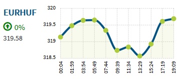 Az euró a reggeli 319,69 forintról 319,56 forintra gyengült este fél hétre. Napközben 318,50 és 319,82 forint között mozgott.