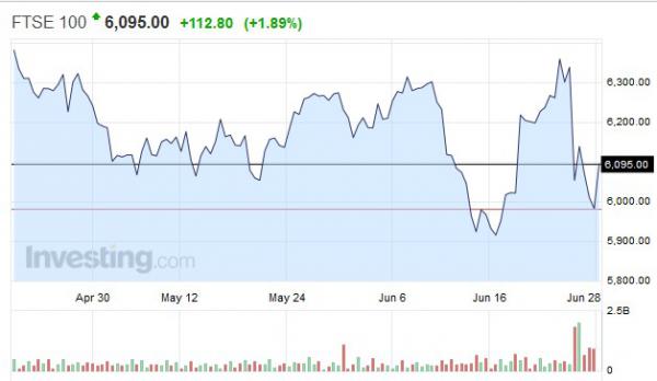 A londoni értéktőzsde fő mutatója, az FTSE-100 index 1,96 százalékos, a frankfurti DAX-index 2,04 százalékos, a párizsi CAC-40 index pedig 2,16 százalékos nyereségben indította a kereskedést. Az euróövezeti vállalatok gyűjtőindexei közül az EuroStoxx50 2,38 százalékkal emelkedett nyitásban.