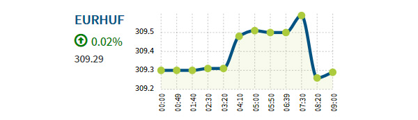 Reggel fél hétkor 309,54 forintra erősödött az euró a szerda esti 309,05 forintról.