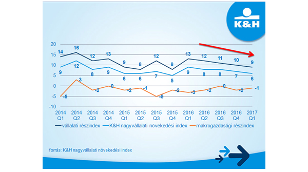Folytatódott az elmúlt egy év trendje: a hazai, 2 milliárd feletti éves árbevételű nem-állami nagyvállalatok növekedési kilátásairól képet adó K&H nagyvállalati növekedési index tovább mérséklődött, jelenleg 6 ponton áll. „A hazai nagyvállalati döntéshozók körében végzett felmérésünk eredménye szerint a cégek óvatosan, ámde mégis optimizmussal tekintenek az előttünk álló egy évre” – mondta el Patrick Van Overloop, a K&H Üzleti ügyfelek divízió vezetője.