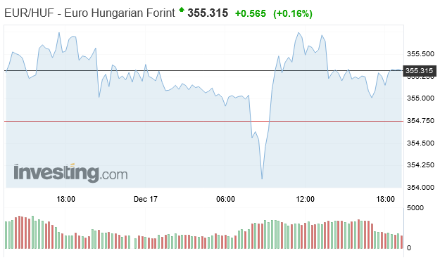Az euró 355,31 forinton forgott este hét órakor, 29 fillérrel emelkedett a közös európai fizetőeszköz árfolyama a reggeli 355,02 forinthoz képest. A napi kereskedésben a 353,96 és a 356,05 forint közötti sávban mozgott az euró jegyzése.