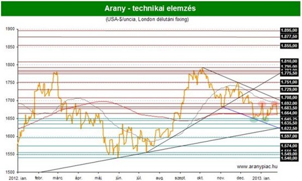 Bár a világ bajaira a jelek szerint továbbra sincs orvosság, a befektetők kockázatvállalási hajlandóságában a Bank of America Merrill Lynch januári kutatása szerint mégis általános javulás figyelhető meg. Az amerikai adósságplafon problémájára most talált halogató megoldás pedig szintén a kockázatvállalás erősödését eredményezi. Az aranyár múlt heti csökkenése a technikai okok mellett tehát annak is betudható, hogy az aranyba fektetett tőke egy része átvándorol a nagyobb hozam reményében más, kockázatosabb piacokra.