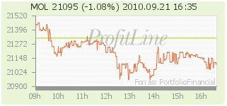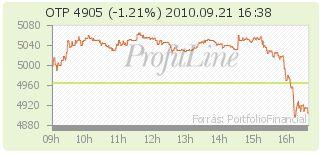 A vezető részvényeket tekintve a Mol 230 forinttal, 1,08 százalékkal 21.095 forintra csökkent, 5,5 milliárd forintos forgalomban. Az OTP részvények ára annak ellenére, hogy 5070 forintnál is születtek kötések a nap folyamán, végül 60 forinttal, 1,21 százalékkal 4.905 forintra esett, forgalmuk 13,5 milliárd forintot tett ki.