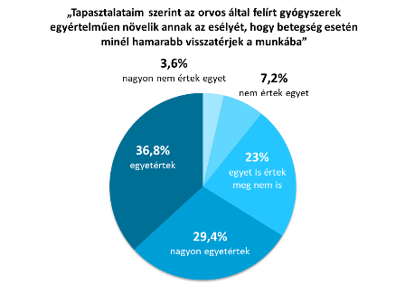 A munkavállalók is tisztában vannak azzal, hogy a korszerű készítmények segítségével hatékonyabb a gyógyulás. Az AIPM kutatásának eredményei alapján a válaszadók több mint kétharmada (66,2%) egyetért azzal, hogy az orvos által felírt készítmények növelik annak az esélyét, hogy a munkavállaló betegség esetén minél hamarabb visszatérjen a munkába.