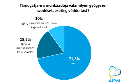 Miközben a védőoltások a megelőzést, a korszerű terápiák pedig a munkába való gyorsabb visszatérést segítik, a hazai munkáltatók körében még nem elterjedt a támogatásuk. Az AIPM országos reprezentatív kutatásának eredményei alapján az aktív munkavállalók több mint kétharmada (71,5%) számolt be arról, hogy munkaadója nem támogatja gyógyszer szedését vagy védőoltást. A munkakörhöz kapcsolódó gyógyszer támogatását 18,5 százalék, a munkakörhöz nem kapcsolódó készítmény támogatását pedig mindössze 10 százalék említette.