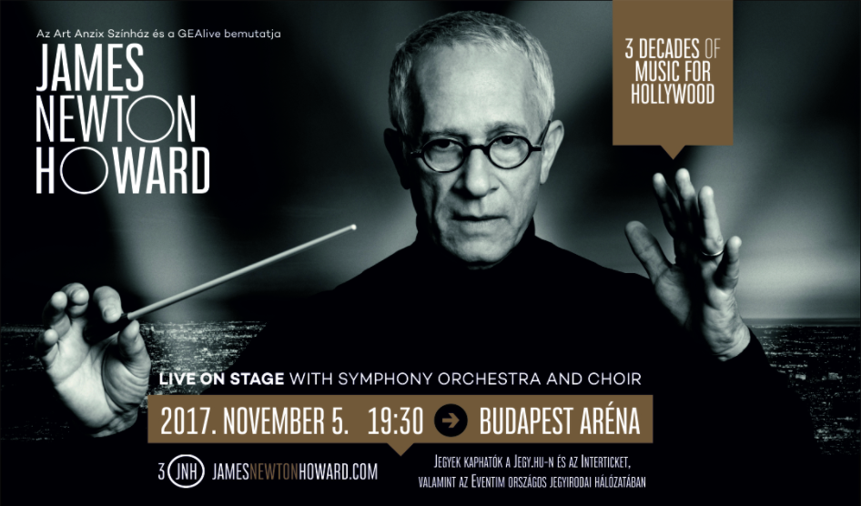 James Newton Howard, Hollywood legnagyobb zeneszerzője bejelentette, hogy a Papp László Budapest Sportarénába is ellátogat első élő koncertturnéjával 2017. november 5-én. A 20 állomásos európai turné premierjére Londonban kerül sor a magyar koncert előtt két nappal, 2017. november 3-án, a Royal Albert Hall-ban.