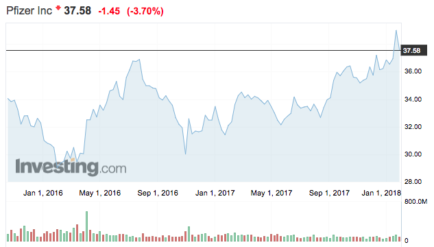2018-as árbevételvárakozását az 53,5 és 55,5 milliárd dolláros sávban határozta meg a cég, ami nagyjából megegyezett az elemzői konszenzussal. Emellett egy 5 milliárd dolláros részvény-visszavásárlási programot is jóváhagyott a cég. Azt követően, hogy az előző kereskedési hét végén, a szektortárs Abbvie gyorsjelentésében az adókulcsának számottevő csökkenéséről számolt be az adóreform következtében, a Pfizernél is hasonlóra számítottak az elemzők.