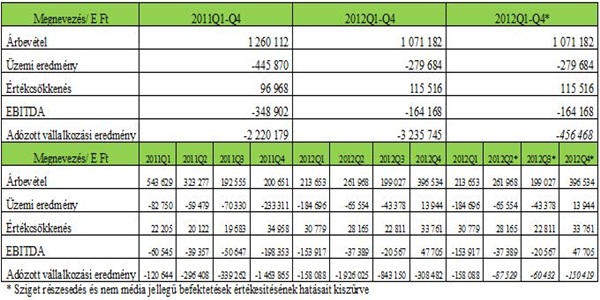 Ezek mindegyikében jelentős előrelépések történtek az elmúlt évben: a racionalizált működésnek köszönhetően sikerült a tavalyi év során a média tevékenységhez kapcsolódó költségeket jelentősen lecsökkenteni az előző évhez képest. Ennek is köszönhető, hogy a korábbi évek jelentős vesztesége után a média tevékenység év közben folyamatosan javuló üzemi eredménye és EBITDA-ja 2012 negyedik negyedévére pozitívba fordult.