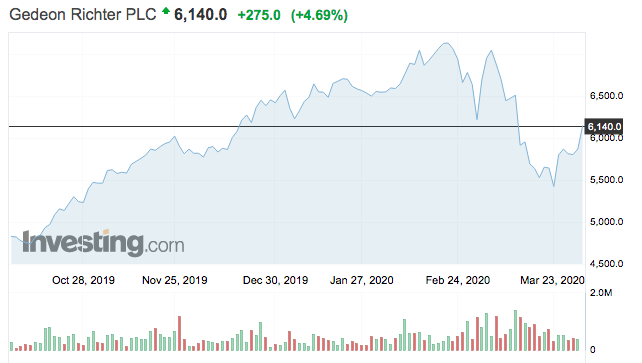 A Richter részvények tőzsdei árfolyam alakulása