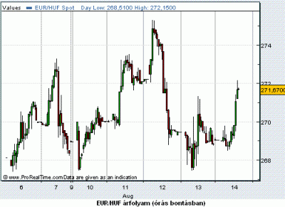 Az eurót péntek délután fél ötkor 271,50 forinton jegyezték a csütörtök délutáni 269,89 forint után. A forint árfolyama nap közben gyér forgalom mellett többnyire 268,50 és 269,50 forintos euró árfolyamhatárok között mozgott. A meglepetést okozó amerikai fogyasztói hangulat index hatására azonban a hirtelen erősödésnek indult dollár árfolyamát követve a forint (a zlotyval együtt) zuhanásszerűen gyengülni kezdett.
