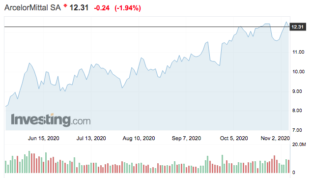 Az Arcelormittal részvények tőzsdei árfolyama