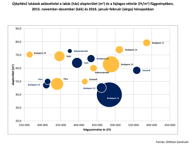 „A kínálati árak jelentős emelkedéséről szóló hírek egyfajta önbeteljesítő jóslatként vásárlásra ösztönzik a vevőket. A kereslet élénkülése az árakat is felfelé mozdítja. A ténylegesen megvalósult tranzakciók tapasztalata az, hogy a főváros legtöbb kerületében az új lakások ára 5-15 százalékkal emelkedett az elmúlt két hónapban a tavaly év végi árszinthez képest.” – mondta Soóki-Tóth Gábor az Otthon Centrum elemzési vezetője. „Továbbra is igaz, hogy a fővárosban vásárló, a kedvezmény igénybevételére jogosult családoknak a CSOK 10 + 10 milliós maximális kerete mellett a megtakarításaikat is fel kell használniuk a lakásvásárláshoz.” – tette hozzá az elemző. A korábban favorit 40-50 m2 átlagos alapterület helyett idén már a 60-70 m2 felé mozdult el a megvásárolt lakások átlagos alapterülete, ami összhangban áll a kedvezmény igénybevételének lakás alapterületre vonatkozó elvárásaival.