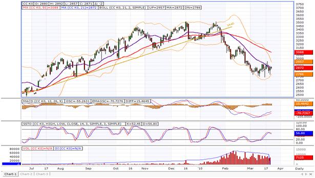 Ami most meghatározó lehet, hogy pontosan egy ilyen időszakban vagyunk, amikor inkább az esésé irányába hatnak az erők. Ezen tényezőket kiegészítve konkrétabb hírekkel további nagyon bearish hangulat tanúsítható a kakaónak. Egyre több hír lát napvilágot az Elefántcsont-part környékéről azzal kapcsolatban, hogy az idei termés nagyon pozitív eredményt hozhat, valamint Kamerun termőterületein rekord nagyságú termést prognosztizálnak, mely meghaladhatja a 205000 tonnát is. Újabb bejelentés érkezett Ghána irányából, mely hír szerint szeretnék megduplázni termőterületeik mértékét ezzel hatalmas hányadát a lakosságnak a kakaó iparban foglalkoztatva.