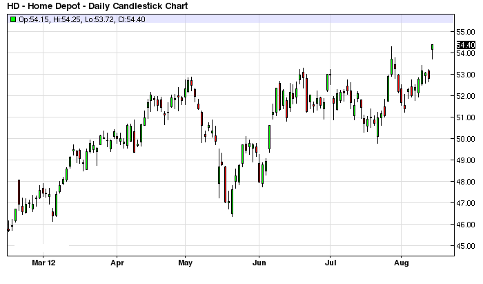 A Home Depot a mai nap folyamán tette közzé a második negyedéves jelentését. A konszenzus $0.98-os részvényenkénti nyereséget várt, de ennél jobbat $1.01-et kaptunk. Jelenleg több mint 3% plusszban van a részvény, ez a jó jelentésnek köszönhető.