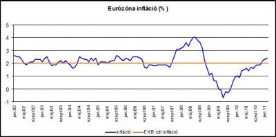 „A nyersanyagok, ezen belül is legfőképpen a kőolaj, valamint az élelmiszerek nagymértékű drágulása veszélybe sodorhatja az EKB által kitűzött 2%-os inflációs célt, hiszen a februári adatok alapján már most 2,4%-ra gyorsult az eurózóna inflációja, és a folytatásban is további növekedésre lehet számítani. Eközben mind uniós szinten, mind az eurózónában javultak az idei gazdasági növekedésre vonatkozó várakozások, ami elvileg lehetővé tenné az euró alapkamat emelését. Ez azonban előre láthatólag még néhány hónapig várat magára, hiszen az észak-afrikai politikai helyzet miatt kialakult feszült gazdasági hangulat, illetve az eurózóna egyes tagállamainak gazdasági instabilitása miatt a piacok egyelőre nem fogadnák jól a kamatemelést. Így most még nem, de néhány hónapon belül, már számolni kell a kamatemeléssel” – mondta el a befektetési szakember.