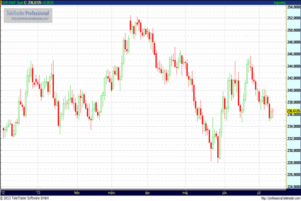 CHF/HUF (234,50 – 238,50): Az EURCHF 1,2450 után megközelítette az 1,2370-et az FOMC és Bernanke hatására, majd 1,24 fölé korrigált ma reggelre. A forint 235 és 237 között vészelte át az eseményeket, a mai kereskedés is ebben a sávban folytatódhat a svájci frankkal szemben.
