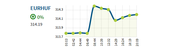 Az euró 314,18 forintra erősödött a reggeli 313,92 forintról. Napközben 313,68 és 314,61 forint között mozgott az árfolyama.