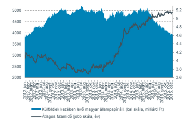 A külföldiek kezében lévő magyar állampapír-állomány és annak átlagos futamideje