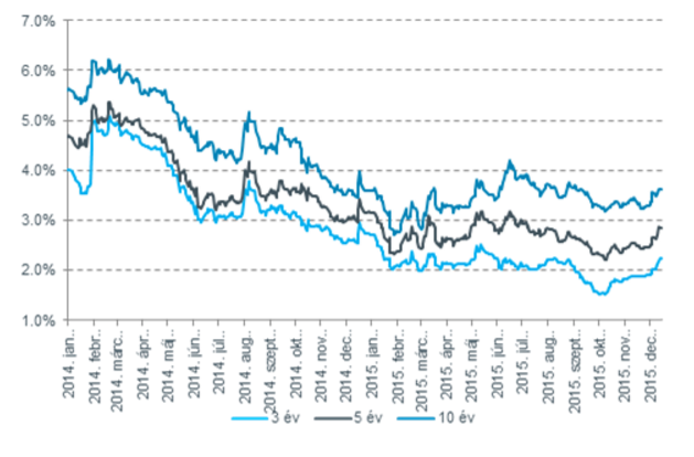 A 3, 5 és 10 éves állampapír-hozamok