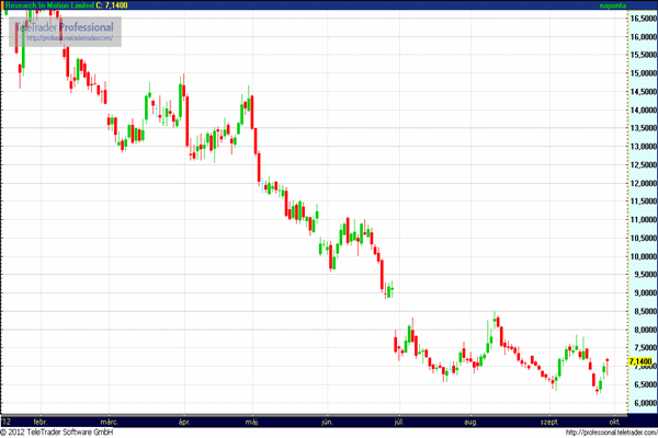A RIM árfolyama tegnap 0,14 dolláros, 2 százalékos emelkedéssel 7,14 dolláron zárt a Nasdaq piacán, az eredményének ismertetését követően azonban az elektronikus kereskedésben további 1,33 dolláros, 18,62 százalékos emelkedést mutatott.